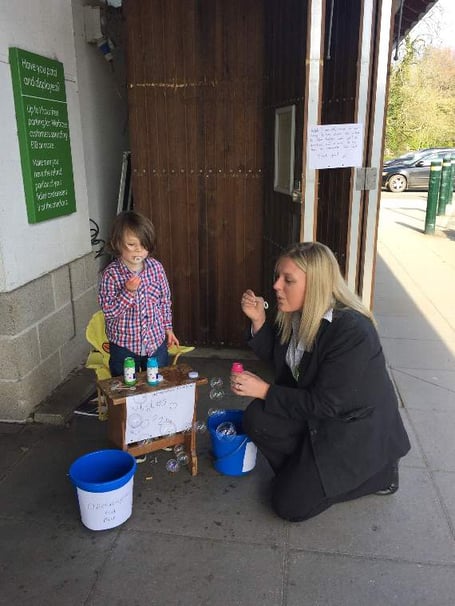 A LITTLE boy was blowing bubbles with shoppers outside Waitrose in Okehampton on Mother’s Day (March 31) to raise money for the Okehampton Foodbank.