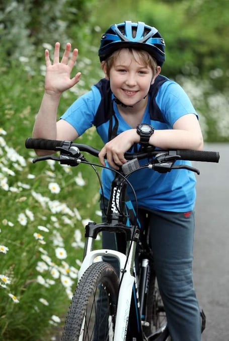 A YOUNGSTER from Exbourne cycled 34 miles last week in order to raise funds to purchase a defibrillator for his village.