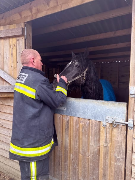 Gini said: ‘By the time I got there there the fire brigade had turned up. There was someone ready to turn back any traffic from going down our lane, a vet, an HR officer and two fire engines. I was amazed at the response and it was helpful to know we had back-up in case we needed them.’