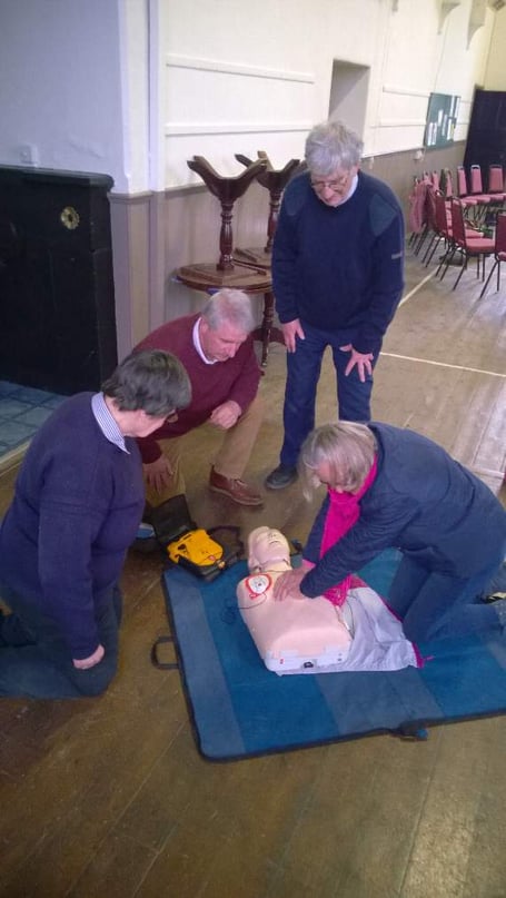 Parishioners and councillors got an emergency training session in how to use the lifesaving equipment at Sampford Courtenay village hall on Saturday.