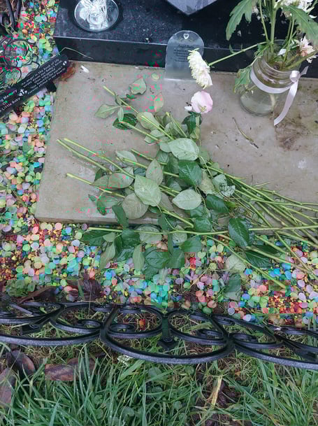 She was upset and puzzled when roses placed by the headstone appeared to have been deliberately cut.