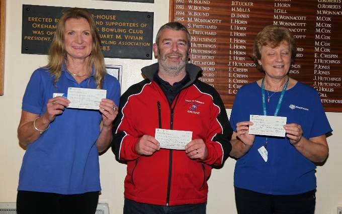 Okehampton Simmons Bowling Club decided to break with tradition and present three charities — rather than the usual one — at a presentation at their annual AGM.