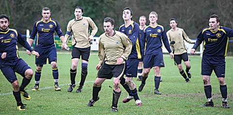 Argyle reserves (in blue) lost at home by 4-2 to Newton St Cyres in division four of the Devon and Exeter league.