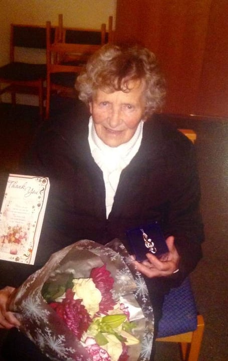 Geraldine Radmore was presented with a bouquet of flowers and brooch shaped like a treble clef by the congregation at her last performance just before Christmas.