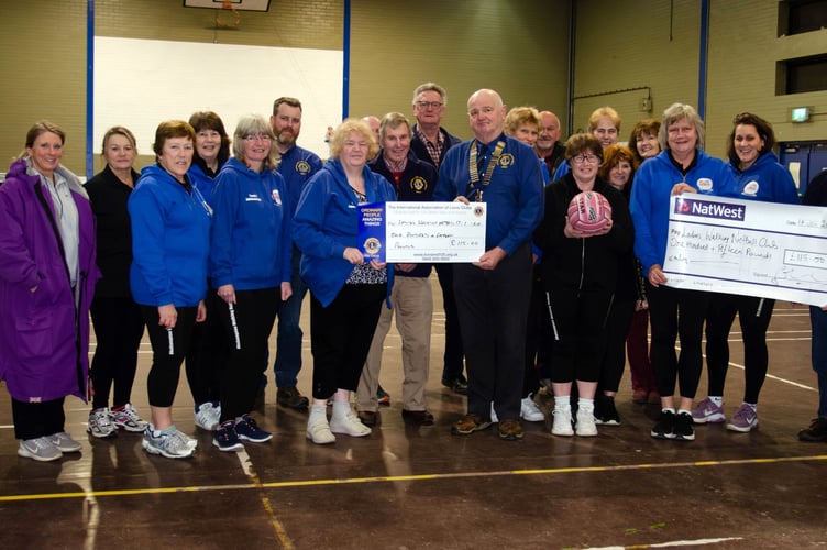 Last week Okehampton Lions and Okehampton Rotary Club representatives presented the ladies walking netball group with a cheque each to help the sports goup afford a secure equipment storage box.