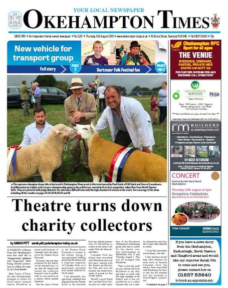 • A charity collector from the Okehampton area has said she is ‘disappointed, saddened and disgusted’ after being denied permission to collect for charity at a local theatre.