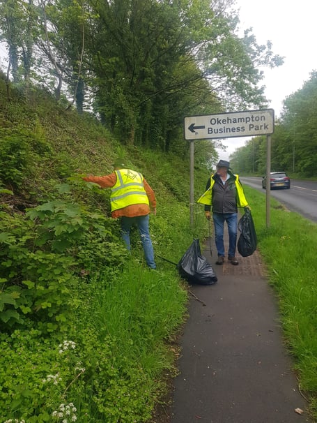 Ann Wood and Christine Marsh of ORIG organised the event with the Okehampton Freemasons, Rotarians, Lions and RoundTable plus Everything Okehampton and invited people to get involved with a Community Litter Pick.