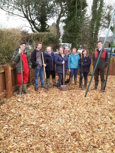 Members of Lewdown?Young Farmers’?Club gave up a Saturday morning to spread a layer of woodchips to give a new soft surface for children to play on.