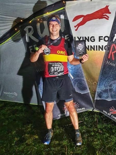 Route-following by head torch was made more challenging due to fog, making it difficult to spot the reflective course markings at times, so much so that Jeremy took a wrong path during the second lap. Fortunately he got back on course, overtaking those who had slipped by him to finish in third place in 1 hour 17 minutes 58 seconds.